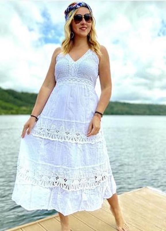 Шикарный белый сарафан платье прошва выбитое вышитое индия