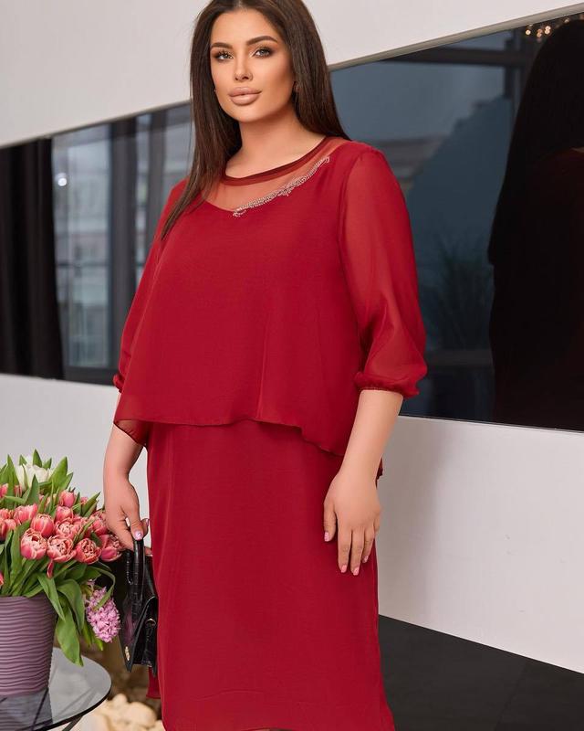 Розміри:54,56,58,60 Колір - бордовий , єлектрик Тканина - шифон , підкладка- трикотажна Заміри по сукні : 54 ог 116 об -122 довж.103 см 56 ог 120 об 126 довж. 105 см 58 ог 128 об 134 довж.106 60 ог 134 об 140 довж 108 вм