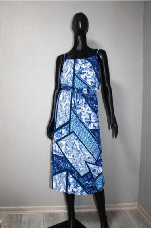 Платье, сарафан, в идеальном состоянии. Размер указан 14. Платье на бретелях которые регулируются, талия на резинке, также затягивается шнурочком. С обеих сторон есть небольшие разрезы, платье целиком на подкладке. Пог- 55, Пот- 50