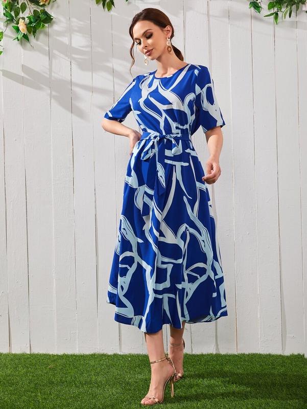 💙Яскрава синя сукня з абстрактним принтом Бренд: Shein 🔹 Тканина приємна на дотик, легка, добре тримає форму, ідеальна на літо☀️ 🔹 Склад: поліестер 97%, еластан 3% — м’яка, трохи тягнеться 🔹 Пояс у комплекті — можна підкреслити талію або носити вільно 🔹 Має стильний рукав до ліктя, зручна довжина міді 📏 Заміри: • ПОГ (груди): 60 см • ПОТ (талія): 65 см • ПОБ (стегна): 72 см • Довжина від горла: 130 см • Довжина рукава від плеча: 31 см Сукня в одному екземплярі 💔без фірмового пакетика шейн