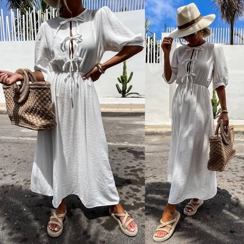 Очень женственное, легкое платье из натуральной ткани тканина : жатка размеры: 42-44, 46-48 цвета: светлый беж, молочный, розовый #725