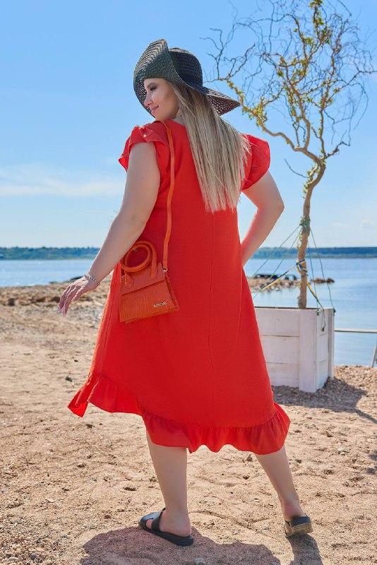 Розмір 50-52,54-56,58-60,62-64 Тканина - льон. Супер якість! Колір - апельсин, малина, зелений, електрик, блакитний,оливка Наймодніша, шикарна, ярка сукня з льону створює легкість і комфорт, виглядає ефектно, елегантно та стильно. Сукня вільного крою, не просвічує, дихаюча, з рукавами крильцями, з боків з кишенями, низ сукні окантований воланом. ідеальний шикарний образ для будь-якого приводу Виміри: 50-52 - ог-108, обт- 116, обхват стегон-130, довжина сукні- 106 см. 54-56- ог-116, обт-122, обхват стегон-138, довжина сукні- 109 см. 58-60- ог-124,обт -128, обхват стегон-146, довжина сукні- 110 см. 62-64 - ог -132, от- 136, обхват стегон-154, довжина сукні- 112 см. вл