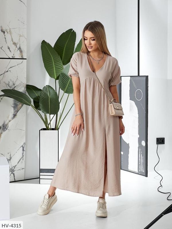 Платье HV-4315 модель 812 Розмiри: 42-44, 46-48 Ткань: классная люкс «жатка-лен» Платье миди из легкой ткани жатка-лен. Модель с рукавом-фонариком и эффектным v-образным вырезом на груди, также есть разрез на ноге, который подчеркивает красоту ног. Расклешенный крой юбки, создает романтическое и легкое настроение. Под данное платье подойдет различная обувь! Произведено в украине