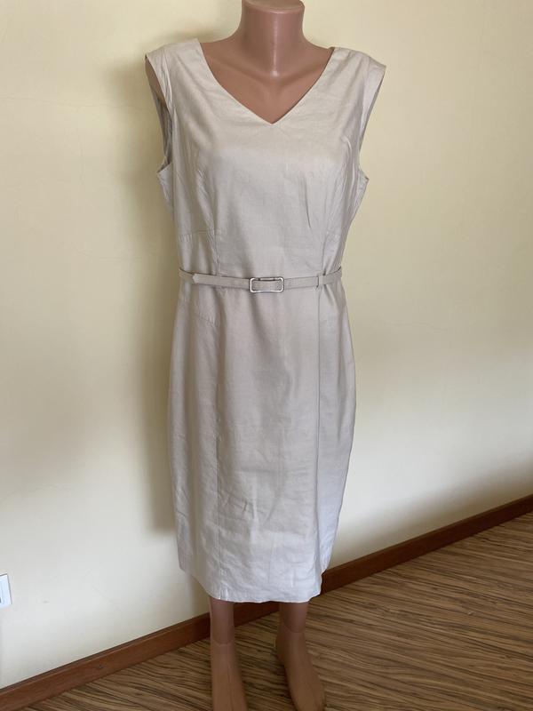 Платье летнее. Размер М, L. UK 14, EUR-42, CN 165/96A.ПОП-42, ПОГ-50, ПОТ-45, длина -102. Состав: 54% - лен, 45-вискоза, 1- эластан. Подкладка-100% полиэстер.