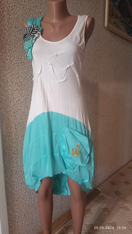 легкое платье на лето RIMIT. размер s. Верхняя часть платья ткань имеет форму, тянется. Низ бирюзового цвета, ткань хлопок 34
