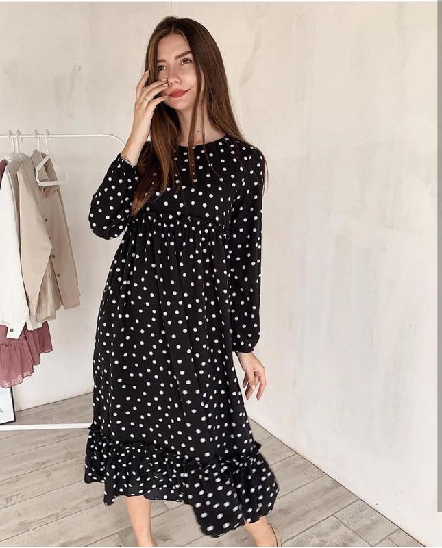 Красивое женственное платье украинского бренда классический принт горошек (полька дот) есть волан для любой фигуры будет красиво идеальное состояние