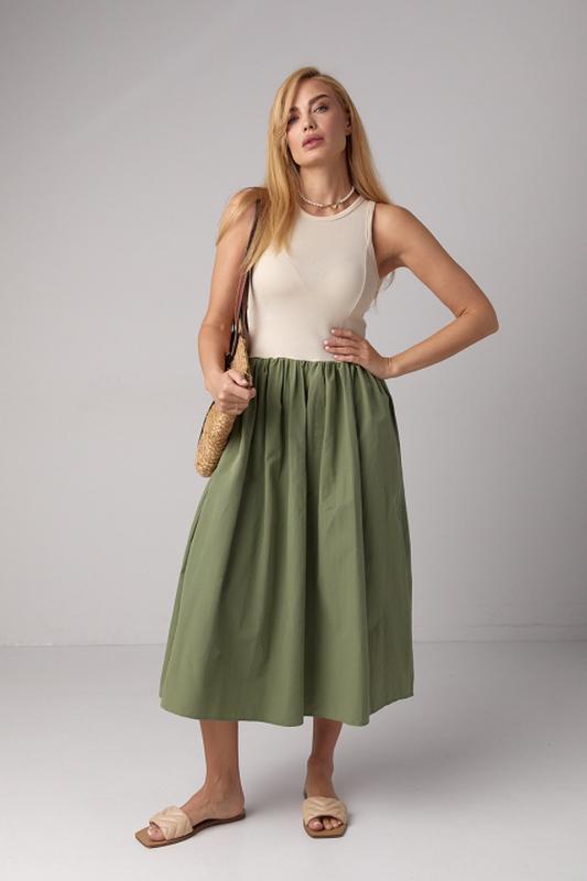 Комбинированное платье миди с пышной юбкой