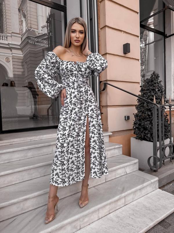 В наличии новинка🌸 нежное и очень легкое летнее платье комку на затяжке спинка затягивается на шнуровке, рукав длинный на резинке, на юбке с разрезом🌺 • 680 грн Арт. 10474 Тнань: шелковый софт, принтованный Коляры: белый (розовый цветок),белый (малиновый цветок), белый ( черный цветок) Размеры: с-м; м-л С-М Об. гр. до 92 см. Длина рукава 68 см Длина платья 123 см. М-Л Об. гр. до 100 см. Длина рукава 69 см. Длина платья 124 см.