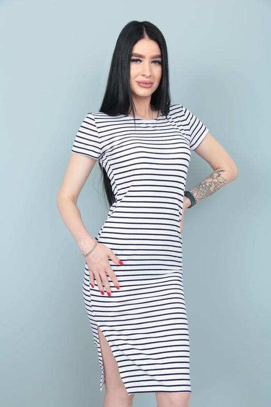 Платье-миди в полоску Платье в горизонтальную полоску – маст-хэв для каждой модницы. Его преимущество заключается в универсальности: надеть можно и с каблуком, и с плоской подошвой, можно и на работу, и на встречу с друзьями или на свидание, можно отметить женственность, а можно - на спортивный стиль. Если вы любите такие универсальные вещи, вам точно стоит купить платье в черно-белую полоску «Регина» в стиле casual. Модель имеет прямой фасон и небольшой разрез, акцентирующий внимание на ногах. Неглубокий вырез и короткий рукав делают его удобным и элегантным одновременно. Изделие представлено в темной и светлой расцветках. Основные характеристики Особенности и преимущества платья в горизонтальную полоску: длина – миди (от плеча – 105 см); материал – вискоза; фасон – прямий, прилеглий; короткий рукав; вырез «лодочка»; разрез внизу с правой стороны изделия; цвет – темно-синий, белый (молочный); размерный ряд – 42-44, 46-48. Изделие отлично сочетается с джинсовыми или легкими тканевыми куртками, классическими и спортивными кофтами. К разряду можно выбрать кеды, кроссовки, босоножки на платформе или низком ходу, эспадрильи.
