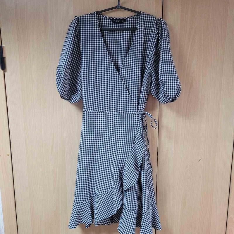 Платье на запах, пышный рукав внизу на резинке, внизу оборка. Цвет черный, белый. Ог 100+, талия 66+-, рукав 37, длина 100.