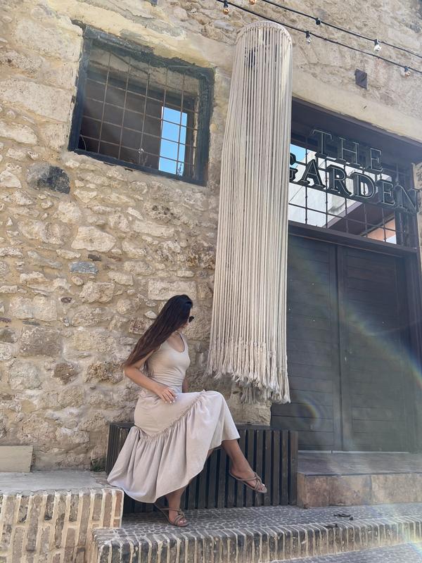 Очень удобное и комфортное платье. Есть поясочек. Ткань немного тянется. Состав: 55% вискоза и 45% полиамид Длина 126 Пог 38 Пот 32 Поб свободно