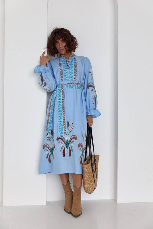 Платье вышиванка в голубом цвете 💓💓💓 Очень красивая и женственная • производство Турция • размеры S M L/ХЛ • тканина бавовна мод.ал105