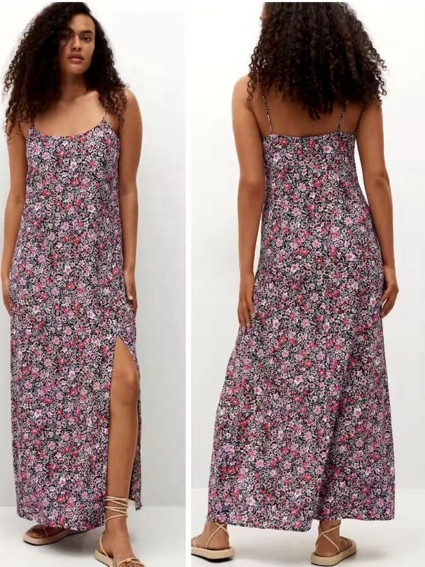 Платье миди на тонких бретелях от Mango в цветочный принт. Ткань струящаяся, очень легкая, не тянется, не просвечивает. 100% Вискоза Стан - идеальный Размер S ПОГ - 43 см ПОТ - 45 см ПОБ - 52 см длина - 132 см