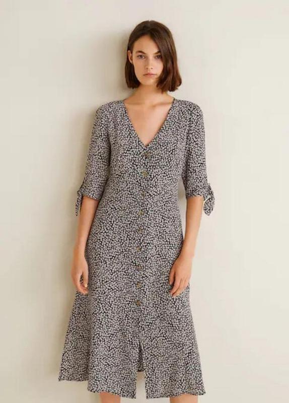 Легка приталена сукня міді у квітковий принт Mango Заміри: довжина 123, ПОГ 45, ПОТ 40, ПОБ 50, рукав 39, плечі 37 Склад: 100% віскоза Нова, без паперової етикетки