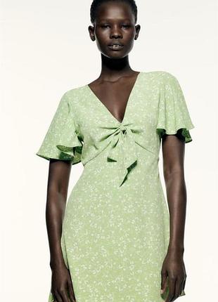 Платье с V-образным вырезом и короткими рукавами. Застегивается на скрытую молнию сбоку. Цвет зелено-белый размер XS Материал: 100% Полиэстер Новая, без бирки