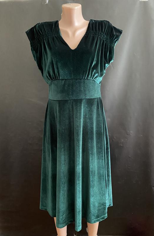 Изумрудное велюровое платье платье миди оригинальное нарядное платье