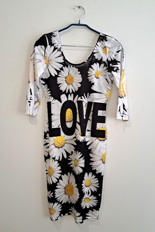 Платье с принтом. Ткань мягкая, тянется. Без видимых следов носки. (10387) Размер: XS/S Полуобхват груди: 41 см, тянется до 57 см Полуобхват талии: 35 см, тянется до 49 см Полуобхват бедер: 43 см, тянется до 60 см Глубина выреза по переду: 15 см, по спинке: 21 см Длина рукава от горловины: 48 см Длина изделия: 95 см Состав: полиэстер, эластан
