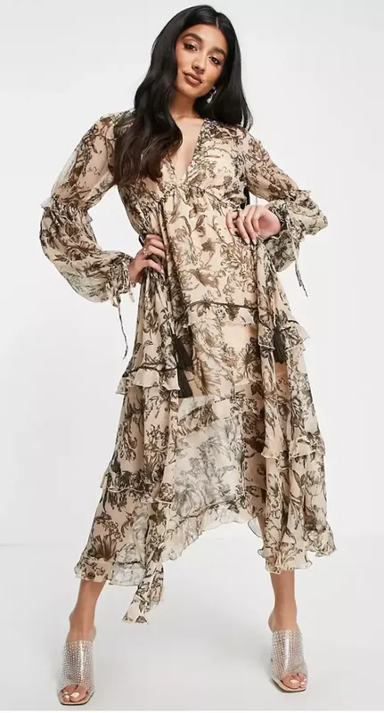 Сукня міді ASOS з квітковим принтом та зав'язками . Дуже зручна модель, яка підійде для різних випадків. 💫Стан нової без дефектів 💫Размір 14 наш 48-50 💫Заміри: довжина по спинці 120/125 см., до талії 38 см., плечі 38 см., рукав 68 см., ПОГ 53 см., ПОТ 53 см. (регулюється паском), ПОС 65 см. 💫Склад: 100% поліестр
