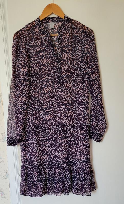Полупрозрачное платье марки 3 suisses colection. На планочке со стойкой заниженной линией талии и оборкой .Состояние идеальное. Длина 104, плечи 38,, пог 47, пот 45 см, поб 52 см.