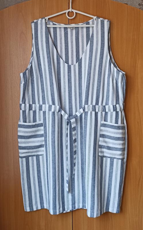 Длина от плеча 98, высота проймы 28, ПОГ 62, ПОТ 61 регулируется поясом, ПОБ 67 Состав: 51 лен, 49 вискоза Розмір на бірці 22 Маломерит!