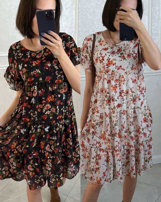 Сукня Модель 822 Размеры 42-46 Платье, Платье Модель 1822 Размеры 48-52 и 54-58 Ткань шифон дизайн (может отличаться от фото и меняться) мягкая и нежная ткань, почти невесомая, подкладка трикотажная Трехъярусное платье, свободного кроя, на все случаи жизни Цвета черные с цветами и молоко с цветами Отличное качество и цена ‼️ОТПРАВКА в течение 2-4 дней ‼️БЕЗОПАСНОСТЬЮ ОПЛАТОЮ НЕ ОТПРАВЛЯЕМ