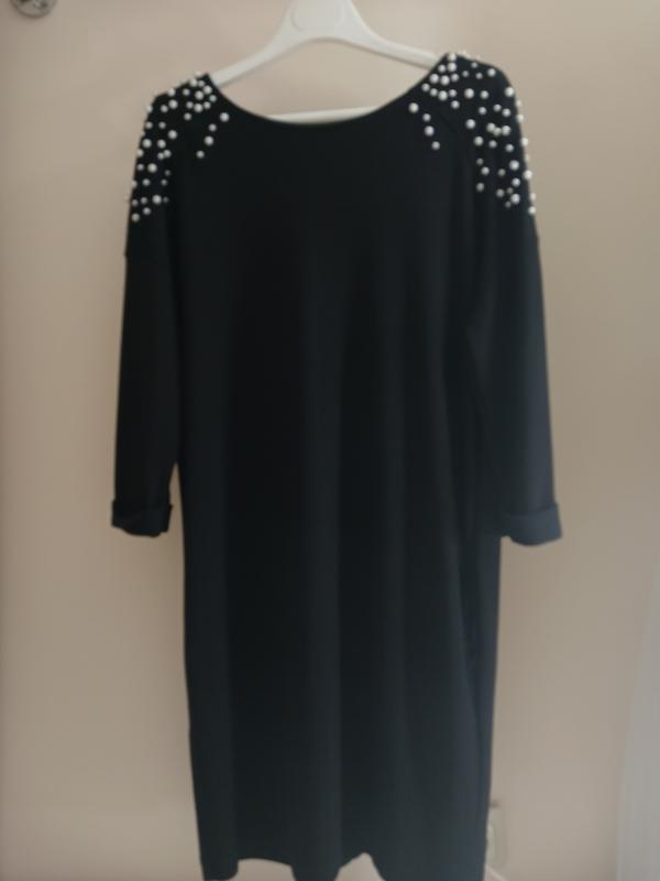 Новое платье Черного цвета Написанный размер:"s" Размер по объему "см: Объем груди до 115см Талия до 105см Длина изделия 96см Рукава длиной 32см Платье прямого покроя. имеет два кармана