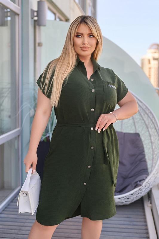 Летнее платье-рубашка в актуальных цветах Стильное и очень удобное платье, которое обязательно должно быть в гардеробе каждой красавицы летом Тканина:структурний креп-жатка🌟 Кольори:червоний,синий,теракот, горчица,хаки🌟 🌟Арт.7147 🌟Р:50-52;54-56 🌟цена 1150грн