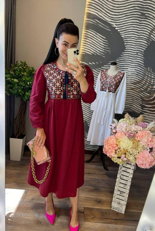 невероятно красивое и универсальное платье прямого силуэта из искусственного льна с элегантным разрезом на груди, украшенным декоративным шнурочком, длинными рукавами на манжете внизу, удобным пришитым поясом, который прекрасно подчеркивает красоту вашей фигуры, да потрясающе красивой пришитыми вышивкой на груди трендовое платье с вышивкой всегда будет модным и актуальным, в ней вы будете выглядеть свежо и элегантно в любой жизненной ситуации размер единственный 42-46 длина 117-118 см, объем груди по изделию 96-98 см