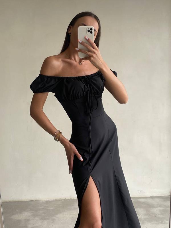 Сукня 🔥 Арт.335 Тканина: якісний софт Розмір: 42-44, 44-46 Колір: білий, чорний Ідеальна базова сукня ❤️ Сукня міді самого універсального крою, яка підкреслює талію, та гарно відкриває ключиці, рукав на резинці та куліска на груді🔥😍😍