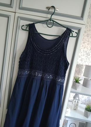 Синее платье с пайетками в отличном состоянии.Бирка с размером срезана,ориентируйтесь на замеры S-M-L. По груди 43+(трикотаж) Длина 102