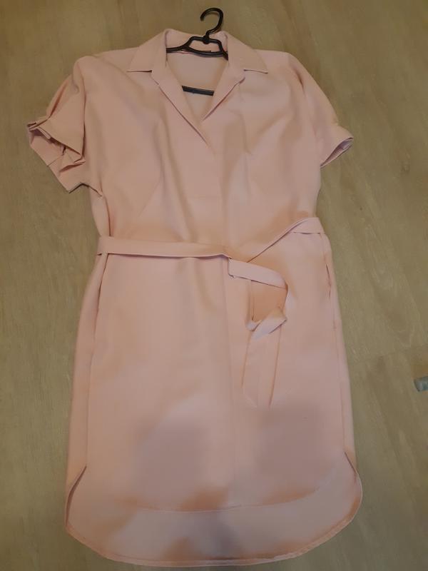Платье с карманами под пояс,рукав летучая мышь,цвет пудра,р.46-50 примерно