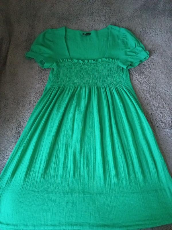 Платье легкое, не жаркое, имеет приятный цвет. На фигуре очень хорошо смотрится.. Тканина жатка 100% бавовна. Длина 88см, плечи 37см, пог 39 ( тянется до 49см за счет резинки), перчатки фонарик длиной 20см