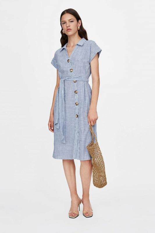 отличное на лето платье с 100% хлопковой ткани в мелкую бело- синюю полоску известного бренда Zara . состояние новой вещи. указан размер L. ткань средней плотности. пуговицы растегиваются, сзади пояс пришит, на талии не отрезное. по бокам разрезы. большой выбор платьев, смотрите другие мои объявления. замеры: длина от плеча до низа - 109 см. полуобхват груди - 55 см. полуобхват талии - 56.5 см. полуобхват бёдер - 59 см. полуобхват внизу платья до разрезов - 61.5 см. длина разреза - 31.5 см. длина рукава от горловины -23.5 см.