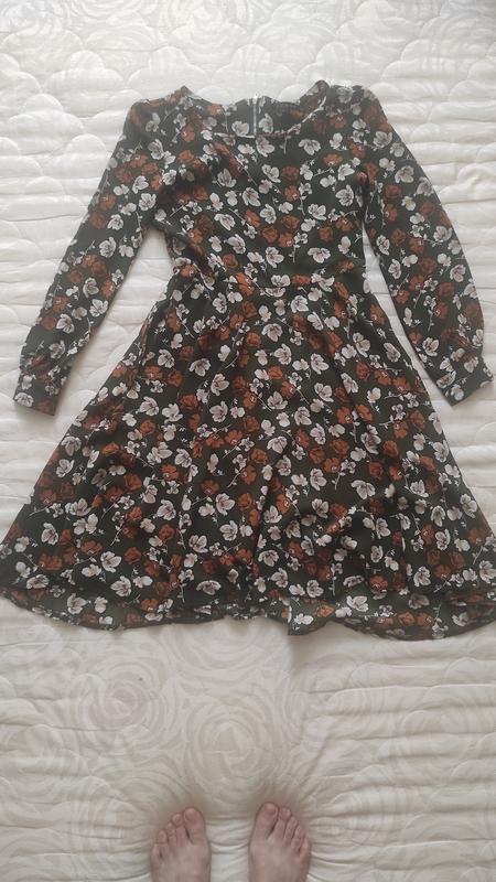 темно-зеленое платье с принтом и с карманами, с подкладкой длина 93 см По талии объем 70 см