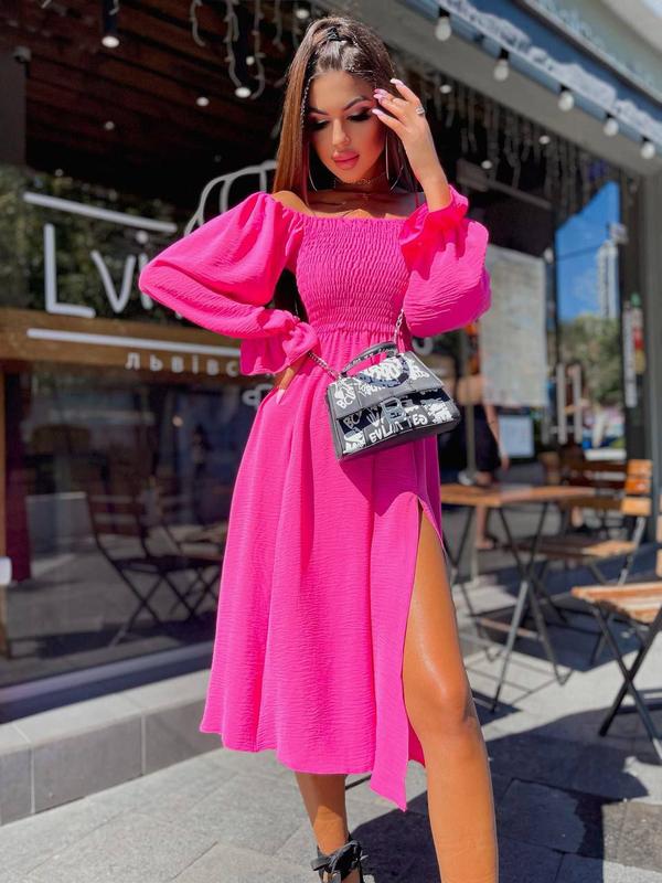 Платье Милена Размер 42-44 На талии резиночка Эффектное платье с разрезиком Ткань креп Очень много цветов Исправте пожалуйста цену!
