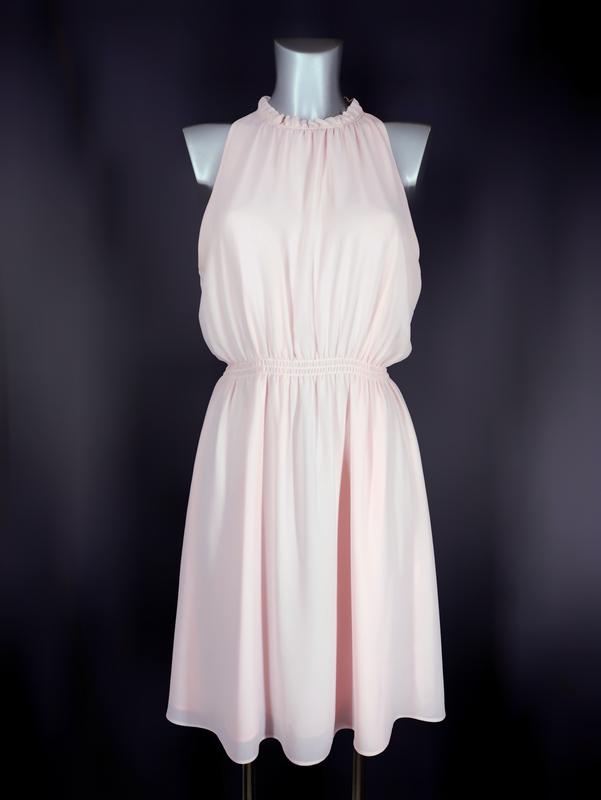 Нежно розовое платье элегантное короткое миди платьице из шифона выпускной праздник коктел...