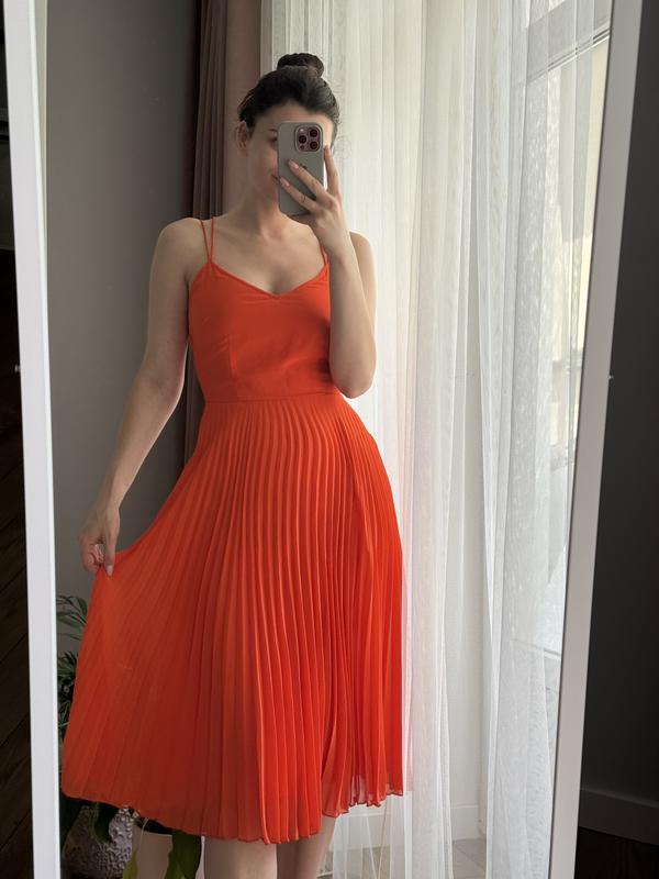 Платье миди плиссе Asos, в идеальном состоянии. Имеется 2 затяжки снизу шва, которых за счет плиссе не видно (последнее фото) Размер: 34 Стан: Идеальный Замеры: * Длина: 117 см * Бедра: свободные * Грудь: 43 см * Талия: 33 см Замеры: Одето на 87-69-96, 169 см Будет комфортнее на меньшую талию, чем 69