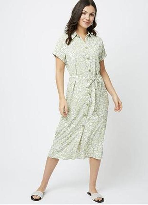 Мятно- зеленое в цветочный белый принт платье- рубашка George 🌷 Размер 12 / подойдет на M-L 💥 Cостав: полиэстр ✅ Замеры: длина 118 см длина рукава от горловины 30 см полуобхват груди 55 см Пот 53,5 см Поб 57 см ширина внизу 57,5 см