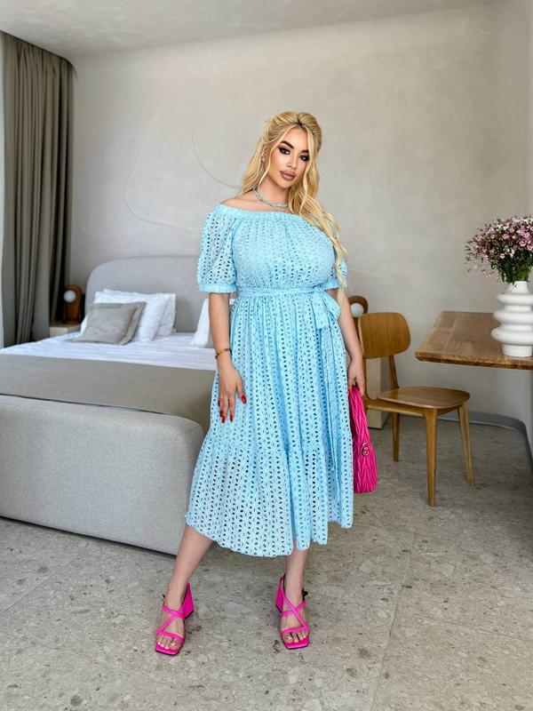 Изысканное дышащее женское платье из прошвы
