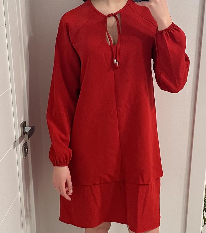 Сукня червона у чудовому стані. На шиї завʼязки. На рукавах резинки. Двошарове. Заміри: • довжина - 93 см. • ширина - 55 см. • довжина рукава - 70 см. За додатковими питаннями або фото у приватні повідомлення.