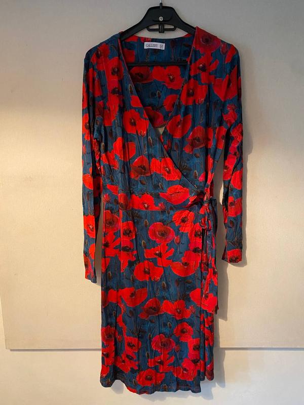 Плаття Gallery у квітковий принт 97%віскоза,3%еластан Добре тянеться,на талії зав'язується і є гудзики Плечі-37см Талія-39см Бедра-48см Довжина-93см
