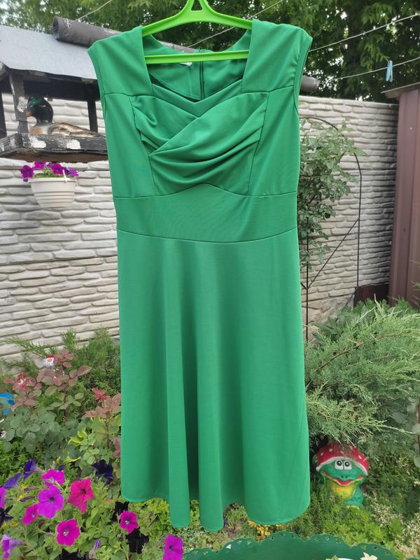 Красивое платье зеленого цвета.Подойдет как на каждый день, так и на праздник.Позади застегивается на молнию. Подойдет на наш 46-48 размеры.