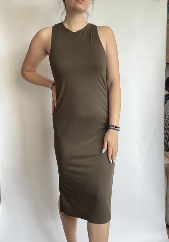 Базова сукня міді від H&M. 100 % віскоза, дуже мʼяка і приємна на дотик тканина. Надіто на зріст 170 см. Стан 9/10. Колір хакі . Розмір М , тягнеться Дивіться всі мої оголошення