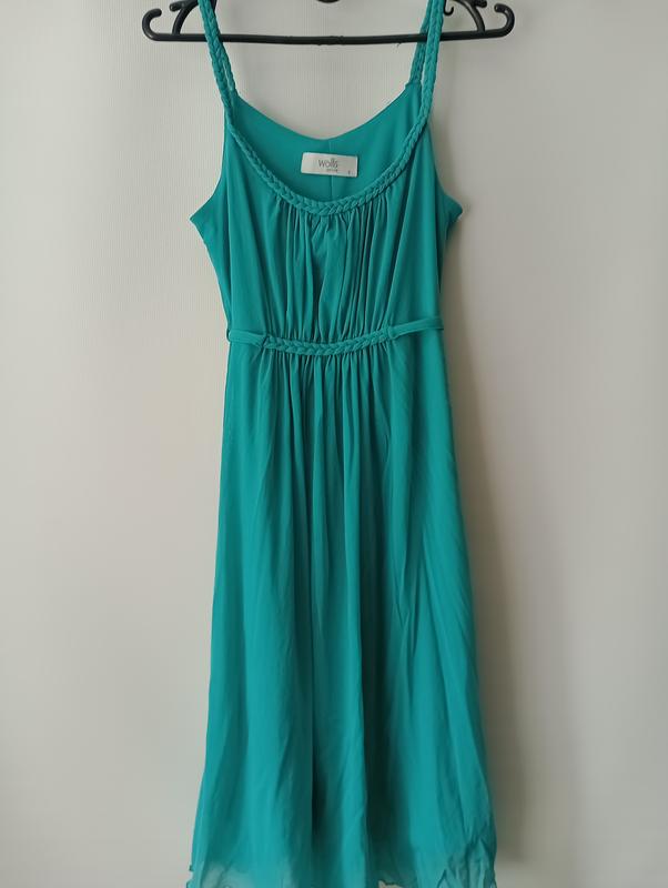 Платье, яркая бирюза, на подкладке, поясок, лёгкое.