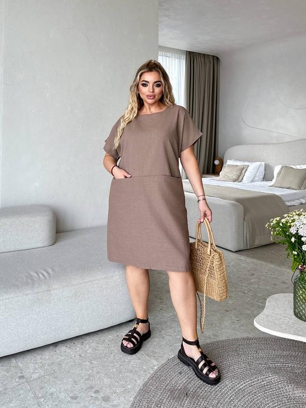Платье из льна, приятное на ощупь, натуральная, качественная ткань Платье Модель 957VL Цена :1280грн Размеры : 46-48,50-52,54-56,58-60,62-64 Цвета: шоколад, хаки, черный Ткань : турецкий лён (качественная ткань, не кашлатится, не парит) Платье свободного кроя, рукав -реглан до локтя, спереди два глубоких кармана, сзади V-образный вырез на спинке с завязками.