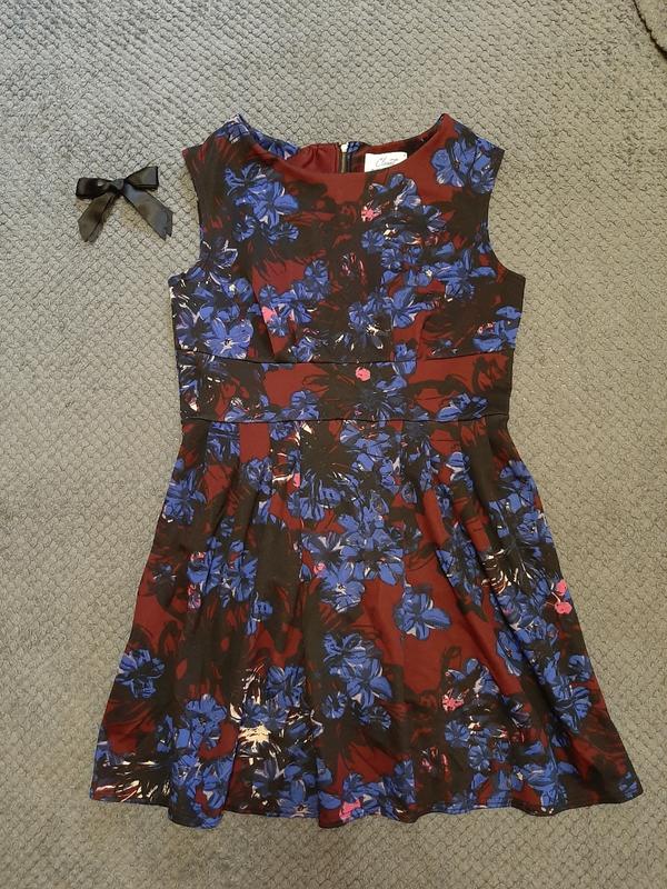 Красивое яркое платье в цветочный принт. Юбка полусолнце-клеш, красиво подчеркивает талию. Ткань эластичная, красиво садится по фигуре. Сзади молния на всю спинку. Размер 16, можно от 12, если пышная грудь. За дополнительными замерами и вопросами уверяйте в личные сообщения. 0127