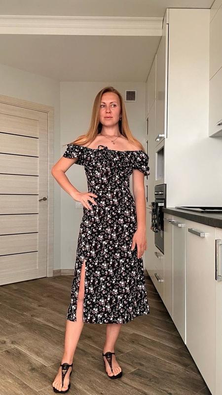5️⃣5️⃣0️<unk> грн женское платье в цветочный принт миди с разрезом обнаженные плечи