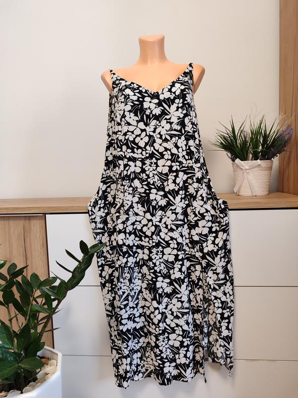 Легкая натуральная ткань, восхитительный цветочный принт, имеет сбоку разрез 40, длина 119, ПОГ 57, ПТ 55, ПОБ 61. Подписывайтесь ко мне, есть много хороших вещей и обновление товара почти через день!