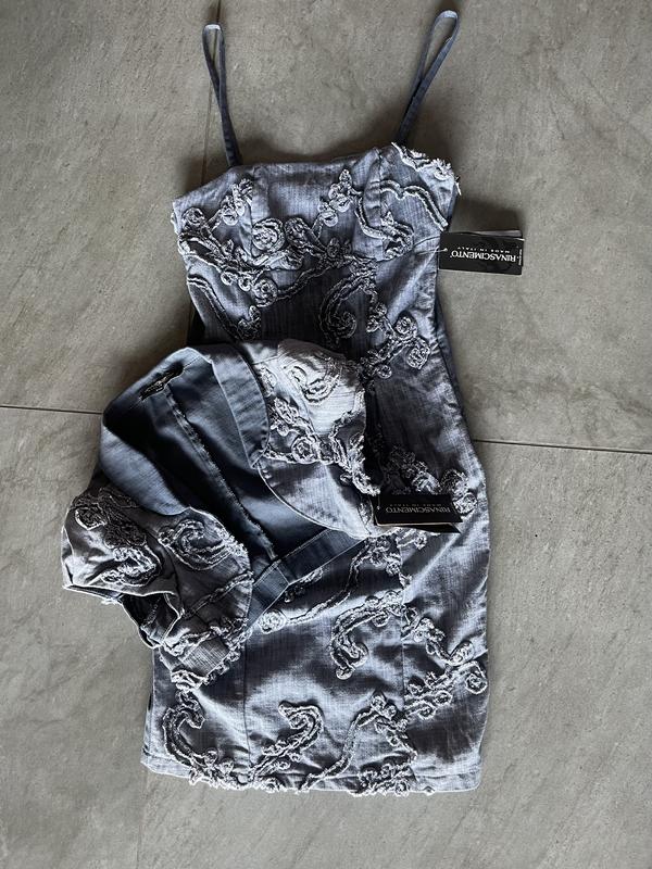 Платье джинсовое декорированное узорами,размер S, стрейчкотон, В комплекте платье на бретелях и болеро с короткими рукавами.Италия.Без дефектов