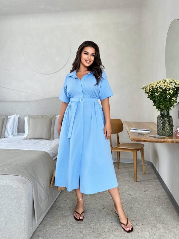 Сукня Арт 2560 Тканина котон стрейч Цвет черный, мокко, мятный, голубой Размер 48-50,52-54,56-58 Цена 810 грн Платье из легкого коттона, на пуговицах, рубашечный воротник. Короткий цельнокроеный рукав, талия на резинке, с карманами.